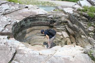 実はこれも「甌穴」です。人が入れるくらいの大きいものは珍しく,どれくらいの時間がかかってできたのか…気が遠くなります。