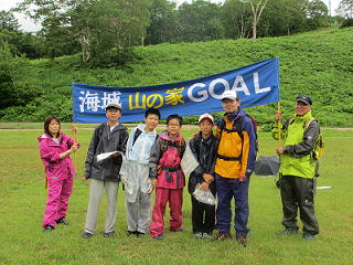 靄がかかり,霧雨の中でしたが,ノッキリに到着。これから山頂にアタックです(登山組1・2組)