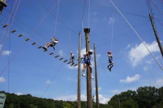 ハイエレメントの綱渡り。2人で協力して高いところの綱を渡りました。