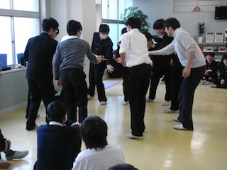 はじめにウォーミングアップとして、コミュニケーションゲームを行いました。