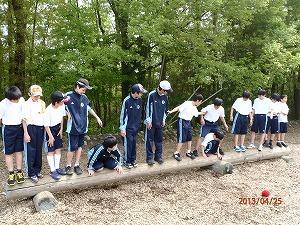 地面に触れさせないようにバランスを取りながら全員で乗る活動です。