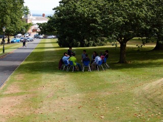 しばらくして様子を見に行くと、今度はクレシダ先生のクラスが野外で。