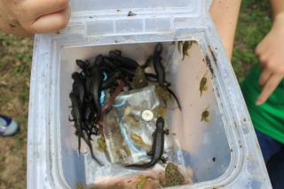 カエルの調査をしていた大学院生に,採集したイモリやカエルを見せてもらいました.