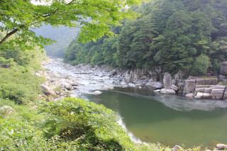木曽川の美しさにも心惹かれますが、一見、静かなような流れもかなりの水量があります。手前は川幅が広く、水深も深い部分です。途中から奥の方は白く泡立っていて、河川の流れが強いことがわかります。水の力は強い。川や海で遊ぶときに、見かけに騙されてはいけないことを覚えていてください。