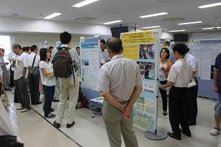 ポスター発表の会場の様子.研究者や先生方も日頃の研究や教育実践を活発に議論します.