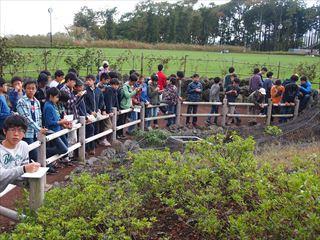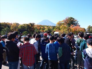 台風一過で晴天に恵まれた27日(日)、中学1年生の希望者51名は富士山周辺への巡検を行いました。「巡検」という言葉は一般にはあまり聞きなれない言葉かもしれませんが、実際に現場へ行き、自分の目で事物を見て回るというくらいの意味です。中学1年の地学では2学期に火山について扱っており、例えば、スコリアや火山弾といった火山噴出物や成層火山の地形など、授業で学んだばかりのことを近くで見て、感じることで、学習効果も一層高まったことと思います。特に今回は、先日世界文化遺産に登録されたばかりの富士山が題材でもあったので、生徒の興味・関心の高さがうかがえました。