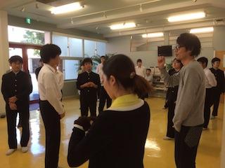 授業の前半では体を動かしながらコミュニケーションについて考えました。
