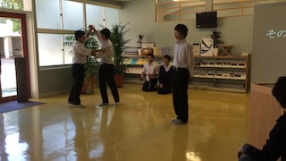 発表会の前に講堂で最終リハーサルです。