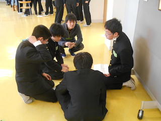 この日は指名された班が別室で待機する大池さんのところに作品を見せにいき、それ以外の班はいつもの場所でアシスタントの方にアドバイスをいただきながら作品創りを進めていました。別室に教員は入らないようにしていたので、その写真はありません。